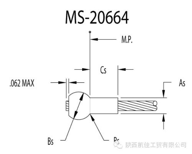 MS Part Number | Cable Dia. | A Dia. | As Dia. | B Dia. | Bs Spherical Dia. | Cs Ref | D Ref | E Rad Ref | L | N Dia. | Rs Rad Ref | Lbs. Per Piece |
