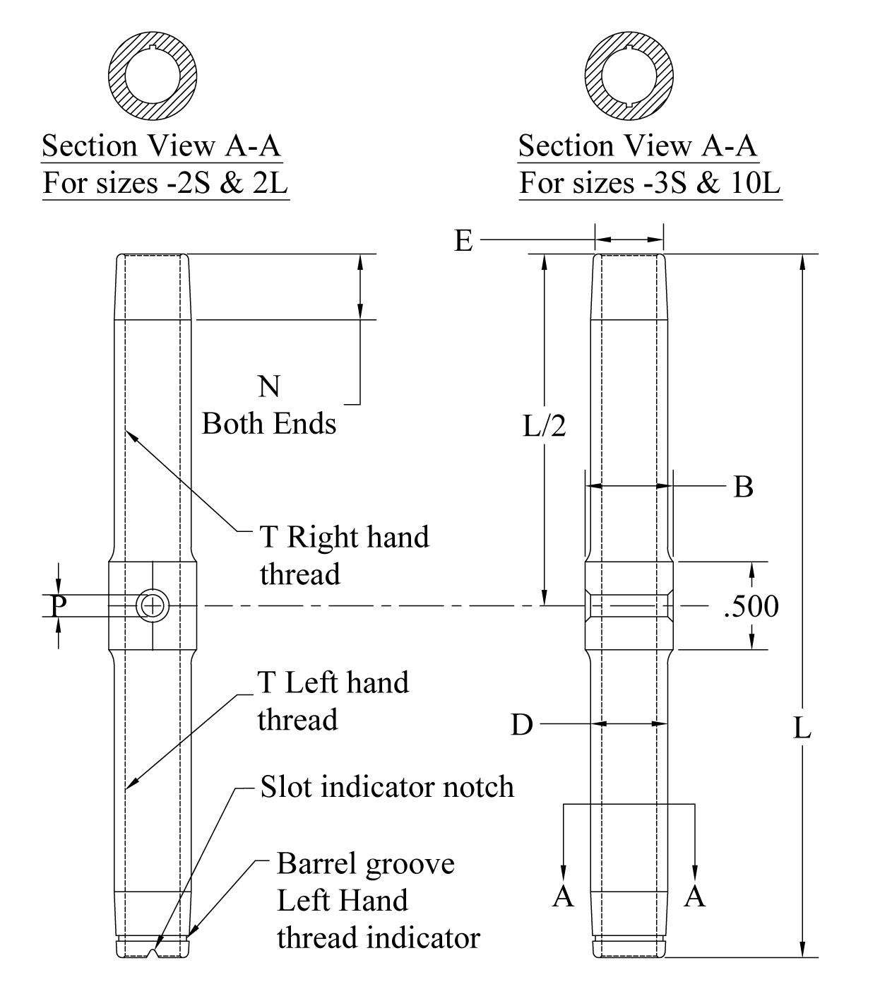 | -10L | -B10L* | -A10L | 5/16 | 17500 | 1/2-20 | 4.250 | 0.875 | 0.656 | 0.813 | 0.625 | 0.188 | -3 | 0.413 |