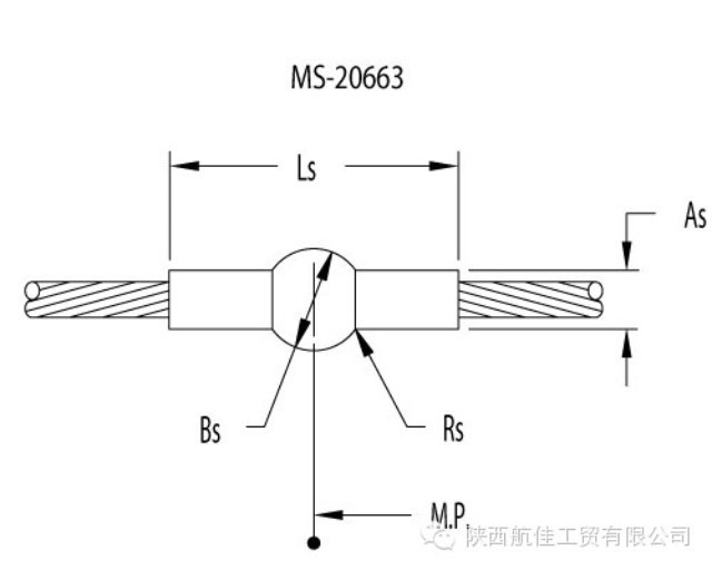 MS Part Number | Cable Dia. | A Dia. | As Dia. | B Dia. | Bs Spherical Dia. | D Ref. | L ± .0075 | Ls Ref. | N Dia. | Rs Rad.Ref. | Lbs. per Piece |
